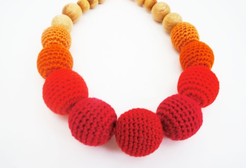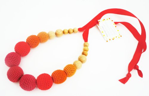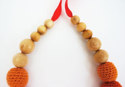 東欧のアトリエ“Freja Toys”でハンドメイドされている天然素材の授乳ネックレスです。欧州玩具安全基準EN71に適合しております。 生後3、4か月を過ぎてくると、授乳中に遊び飲みをし始める赤ちゃんがいます。ママの髪の毛をひっぱったり、おっぱいをぺしぺしたたき始めたり、ママのネックレスをにぎにぎしてみたり、赤ちゃんは周囲に興味津々。出産後?授乳中は、赤ちゃんの安全確保やジュエリーの破損を防ぐために、ネックレスやピアス等のアクセサリーを外す選択をするママも多いのではないでしょうか。こちらの授乳ネックレスは、ビビットなカラーと握りやすい大きめビーズで赤ちゃんの興味を引き、授乳中に握らせることができます。