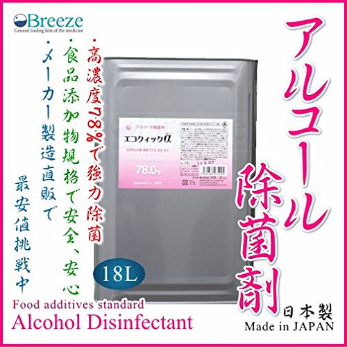 -. Title : アルコール除菌剤 「 エコクイックアルファ 78 」 18L缶 アルコール 濃度78%で強力除菌! 包丁 まな板 食器 等にシュッとスプレー! 食品表面や浸透で除菌・防腐効果が期待できる安心の食品規格 セーフコール アマノール同等濃度