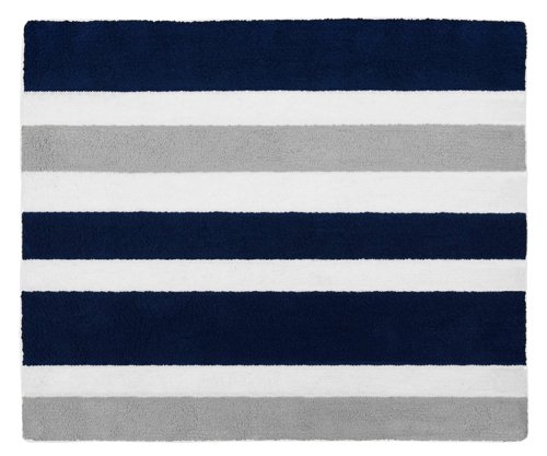 Sweet Jojo Designs Navy Blue, Gray and White Accent Floor Rug for Stripe Kids Teen Bedding Collection