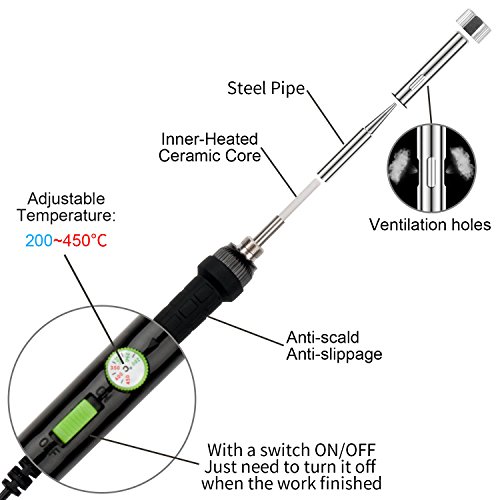 【Heat up quickly + Good Heat radiation】 - 60 Watts 110V, adjustable temperature with thermostat ranges 200~450℃. With Upgraded material to help heat up fast (2 minutes or so), plug directly and use without soldering station.