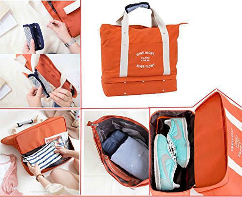 Product Description Design With Shoes Compartment: It has a separate shoes compartment can hold up to 8 men's shoe size or 9 women's shoe size. It can also use for dirty clothes, towel or something else you want.