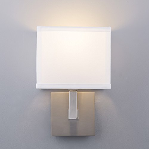 CONTEMPORARY DESIGN - Contemporary One Light Wall Sconce with a Brushed Nickel Finish and White Fabric Shade