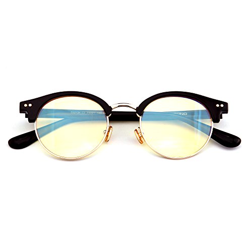 GAMEKING S22134 Retro Vintage Half Frame Blue Light Blocking Glasses Computer Glasses Gaming Glasses with Amber Tint Lens