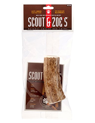 -. Binding : Misc. -. Brand : Scout and Zoe's -. Color : NA -. EAN : 0609722995481 -. Feature : Made in USA / All Natural / No chemicals / Shed Antlers / Source of natural calcium -. Label : Fido Pet Products -. LegalDisclaimer : Always supervise your pup when she is enjoying a Scout & Zoe's chew. When the chew becomes too small, please discard and purchase a brand new one! -. Manufacturer : Fido Pet Products -. Model : SZA-5481 -. MPN : SZA-5481 -. NumberOfItems : 1 -. PackageQuantity : 1 -. PartNumber : SZA-5481 -. ProductGroup : Pet Products -. ProductTypeName : PET_SUPPLIES -. Publisher : Fido Pet Products -. Size : Medium -. Studio : Fido Pet Products -. Title : Scout and Zoe's Medium Antler for Dogs between 15 - 30 pounds -. UPC : 609722995481