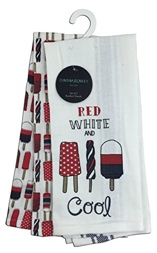 Cynthia Rowley Set of Two Kitchen Towels, Red, White and Blue Ice Cream and Ice Pop Design
