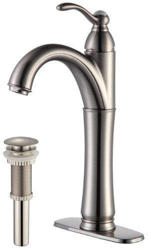 Kraus FVS-1005-PU-10SN Riviera Single Lever Vessel Bathroom Faucet with Matching Pop Up Drain Satin Nickel