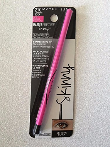 -. Binding : Misc. -. Brand : Maybelline New York -. EAN : 0884653806079 -. Feature : This twist-up automatic gel eye pencil features a micro tip for sharp, precise application. Effortlessly glides on to create long-lasting waterproof definition for up to 24 hours of wear. / One smooth stroke to chic. / This waterproof automatic gel eye pencil features a 1.8mm micro tip for precise application. / Effortlessly glides on smooth for up to 24 hours of wear. -. IsAdultProduct : 0 -. Label : Eyeliner by Maybelline -. Manufacturer : Eyeliner by Maybelline -. MPN : AB-130568 -. PackageQuantity : 1 -. PartNumber : AB-130568 -. ProductGroup : Beauty -. ProductTypeName : BEAUTY -. Publisher : Eyeliner by Maybelline -. Studio : Eyeliner by Maybelline -. Title : Master Precise Skinny Automatic Pencil – 210 Defining Black by Maybelline -. UPC : 884653806079