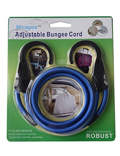 Micagos 48-Inch Blue/Black Adjustable Bungee Cord with Extra Wide Opening Steel Hooks (blue)
