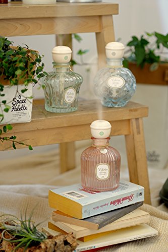 【香水を吹きかけるように、フワッとオシャレに潤す卓上加湿器。】 ぽってり重厚感のあるガラス容器から、繊細なミストがふわりと吹き出すオシャレな卓上加湿器「Vidorio ヴィドリオ」がさらにオシャレになって復活です!ガラスボトルにはピンク・グリーン・ブルーの淡い着色を施し、ゴールドのチャームが付いてより女性らしく華やかな印象に♪デザインはVidorioシリーズの中でも人気の高い3種類を厳選しました。ガラスの容器はひとつひとつ丁寧に手作りされたハンドメイド!大切な方への贈り物にもお勧めです。 オフィスや自宅、車の移動中などいつでもどこでも乾燥が気になる場所で使えるコンパクトサイズ♪USB電源だからPCに繋げてデスクの上ではもちろん、ドレッサーやベッドサイドなどのパーソナルスペースでもご使用いただけます。別売りの変換アダプターを使えばコンセントからでもご使用いただけます。Feature