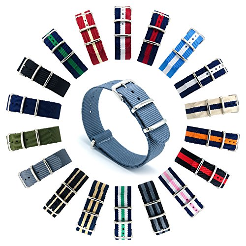 -. Feature : JUNE DEAL: Now for all the watch band products in CIVO store, buy 2 to get 10% money off, buy 3 to get 15% money off, buy 5 or more to get 20% money off! Need not to enter claim code, the money will be adjusted automatically when check out (even if you buy several different products from different listings in our CIVO store, you will still enjoy this deal!) Buy multiple, our simple, classical design watch bands enable you to easily spice up a normal outfit and add style to your life. / PERFECT BALLISTIC NYLON AND HARDWARE: Premium (tighter) weave 1.3mm thick ballistic nylon, slim rectangular hardware (stainless steel) with polished, brushed, PVD, and gold finishes, stitched construction. Our CIVO NATO straps stand out from other regular watch straps on market due to higher quality ballistic nylon weave, hardware finish options, and stitched construction. Lightweight and breathable, yet very sturdy, this CIVO nylon watch band will be your best choice! / PERFECT CONSTRUCTION, EASY TO INSTALL, WATER PROOF AND WASHABLE: Stitched construction and laser cut to eliminate fraying; unlike other Knockoffs using glue and cheap stitching will cultivate bacteria, our CIVO watch band is Stink resistant and machine washable. And most important, we provide 1 high quality sP.R.Ing bar tool and 4 neighboring size stainless steel sP.R.Ing bars for you to change your watch band, which are worth at least $8 if you purchased separately from other sellers. / 100% FIT ALL WRISTS: 11 inches in length and 3 size in width (18mm, 20mm, and 22mm). CIVO watch band length fits wrists from 5 to 9 inches in circumference, which covers most of the population, and when you feel the watch band is too long, you can adjust the length or change the way you wear it according to our CIVO watch band manual. To select width, measure width of watch lug or width of current band at connection point and then select width closest to measurement (18mm, 20mm or 22mm). / PURCHASE WITHOUT WORRY: Each CIVO watch band comes with a 6-month warranty and 90-day 100% money back full refund guarantee. Though our watch bands nearly cover all of the wrist and watch size, if you still think it did not fit as expect, or you have any other dissatisfaction, please email to our after-sale team, we will refund 100% of your money back, no question asked! Click the Add to Cart button now to ensure you receive the best NATO nylon watch band on Amazon.