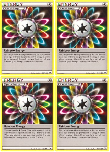 This is a complete playset of four Rainbow Energy Pokemon cards, assembled by the seller. These cards were originally released in the "Pokemon: XY" expansion series in 2014.