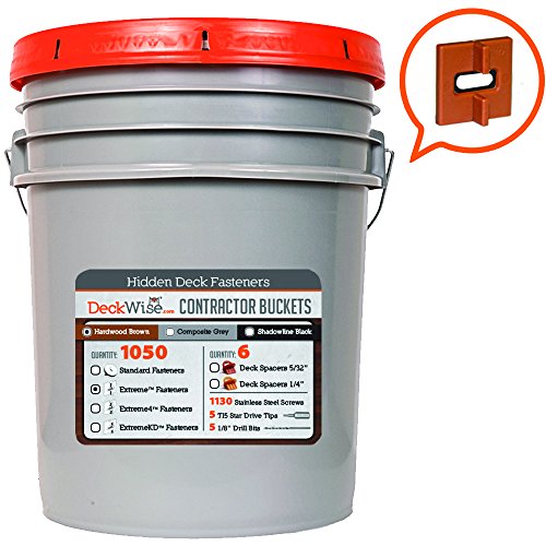 DeckWise Ipe Clip - Extreme Fastener System - 3/32" Spacing - BROWN CLIPS - 1050 pc Contractor Bucket for 600 Sq. Ft. of Decking - (Includes 8 x 2" Stainless Steel Screws)