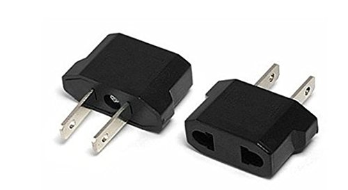 Amalya European to USA American Outlet Plug Adapter (Black, 2-Pack)