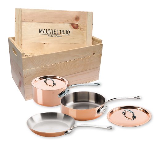 -. Title : Mauviel M'Heritage M150S 6100.01WC Copper 5-Piece Cookware Set with Wooden Crate,Cast Stainless Steel Handles.