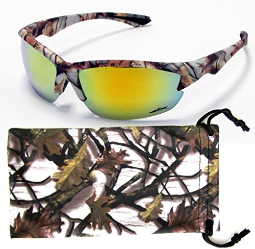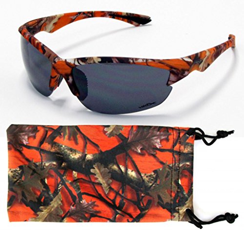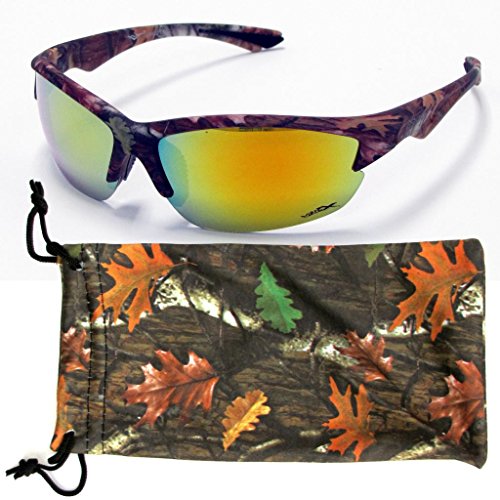 VertX Camouflage Sunglasses are extreme sport sunglasses with extreme style, and at amazing prices. VertX Sunglasses are great for hunting, fishing and any sports or outdoor needs and maintain a high level of functionality. Non-slip rubber grips help keep your sunglasses secure when you are wearing them. Great for people with active life styles. Polycarbonate, shatter proof, scratch resistant, and UV400 offer excellent protection for your eyes.Feature