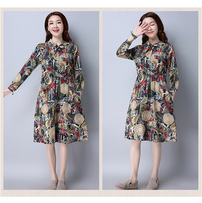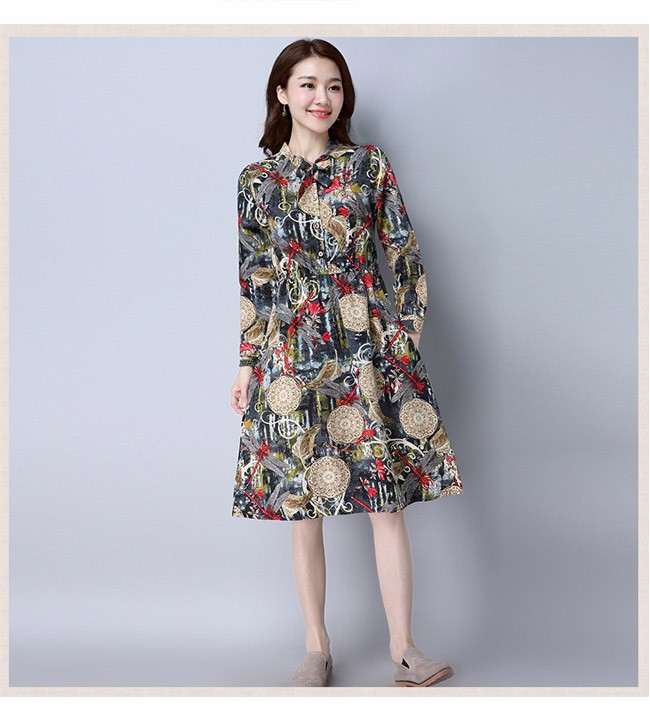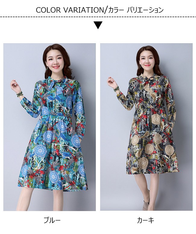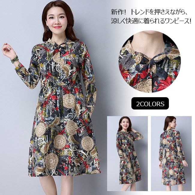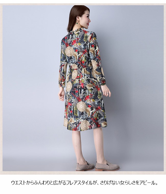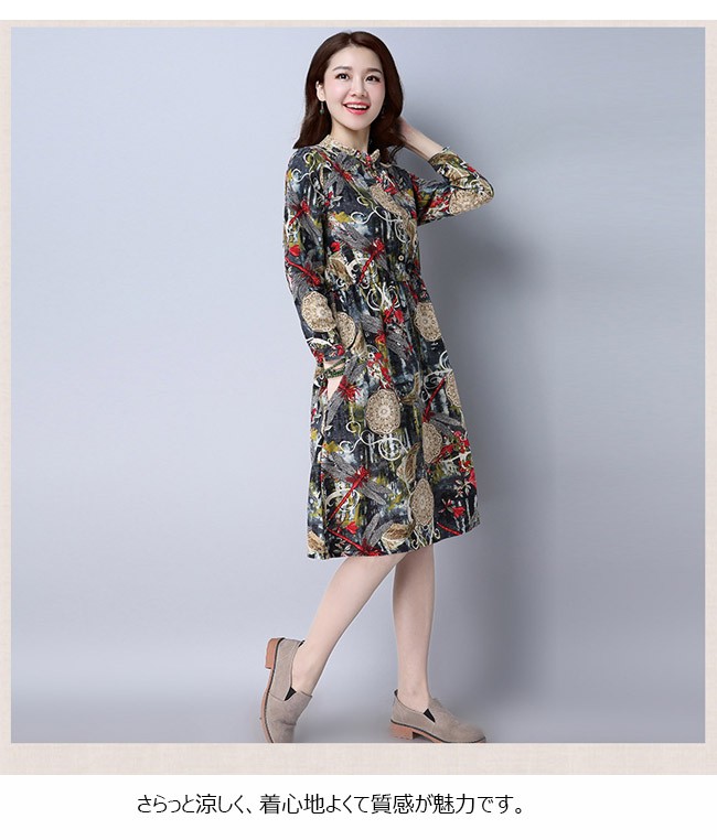 | 商品名 | リネンワンピース 森ガールワンピース 綿麻ワンピース 民族風ワンピース エスニックワンピース レディース ミディアム丈 長袖 エスニック花柄 ゆったり カジュアル 2017秋新作 |