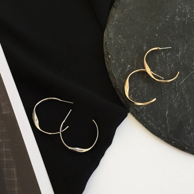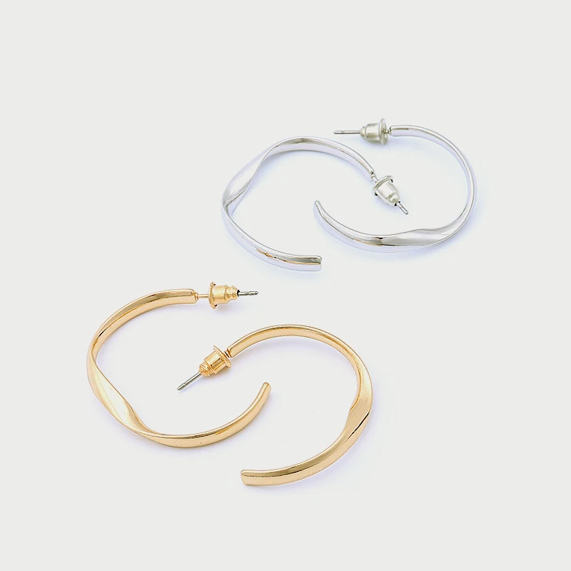 Function 2:Statement Brass Earrings , Open Twisted Circle Hoop Earrings