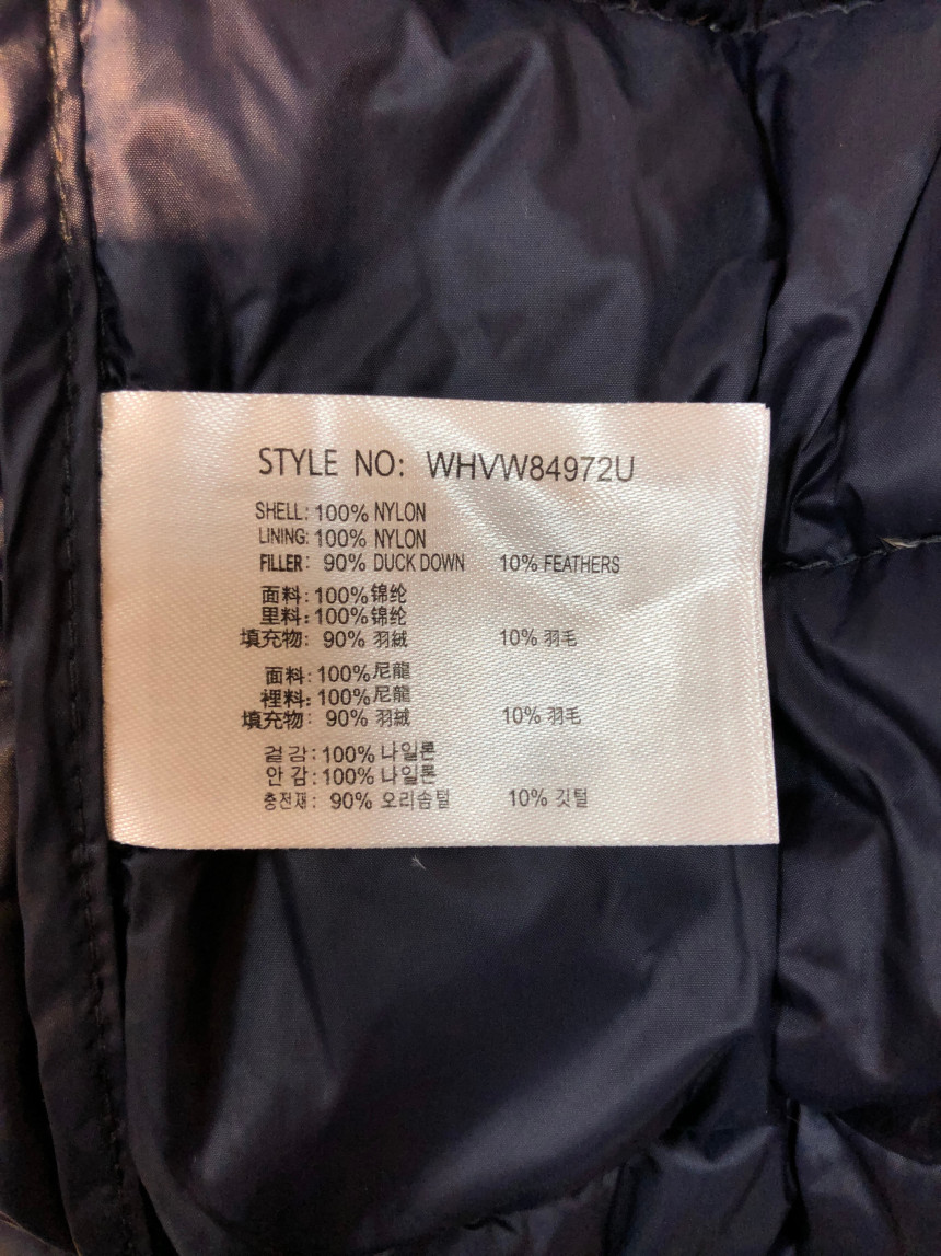 오리솜털 90%, 오리깃털 10%의 충전재로