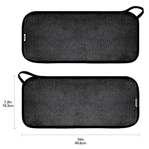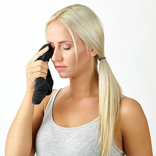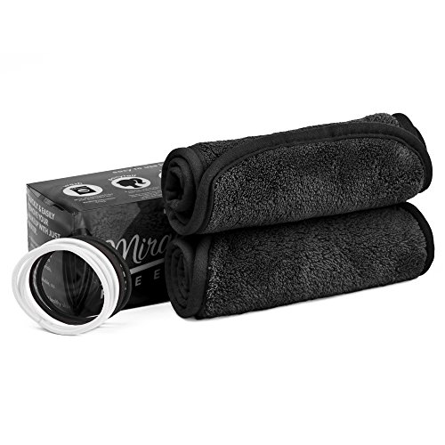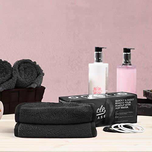 INCLUDES: 2 makeup remover cloths (16in x 7.5in each) and BONUS 6 hair ties. Each cloth includes convenient hanging loop for easy hanging and drying in the shower.