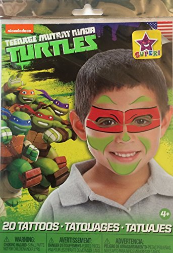 -. Brand : Savii Stuff -. Color : red, black -. Department : boys -. Feature : Teenage Mutant Ninja Turtle Temporary Tattoo Face Mask of Raphael / Contains two complete face mask tattoos for a total of 20 pieces. / Long lasting temporary tattoos are easy to apply and easy to remove. / Tattoo removal is also simple; wipe with alcohol or cold cream. / Enjoy dressing up as Leonardo with a TMNT temporary tattoo for Halloween, parties or any play time. -. PackageQuantity : 1 -. ProductGroup : Apparel -. ProductTypeName : CHILDRENS_COSTUME -. Size : medium -. Title : Teenage Mutant Ninja Turtles Mask Children Temporary Tattoos - Raphael -. UPC : 702785776001