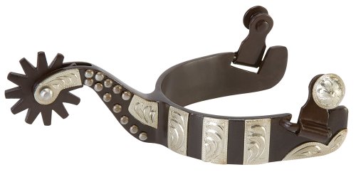 Product DescriptionThese antiqued spurs have a 2" shank, 1" band, engraved German silver trim and an 8 point rowel. Men's size.0