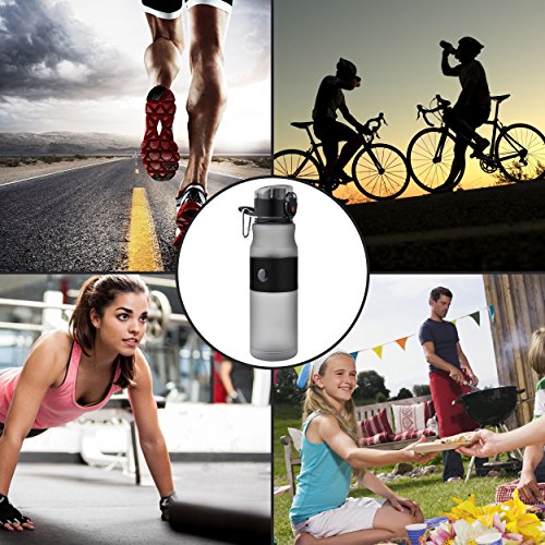 【FLIP TOP WITH FILTERED & EASY TO WASH】 Running water bottle is flip top design, when you drinking water, the lid flips open and stays open till you close it, it is convenience for drinking and will not hurt your nose! And, the lid flips can be rotated open, it is easy to clean.