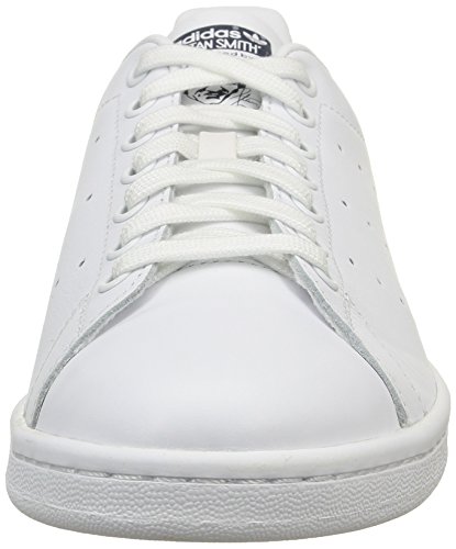 Product Description Stan Smith, along with Mr Chuck Taylor, may very well be the most iconic name in all street footwear. The timeless Stan Smith returns here with a full white leather upper and tightly knit textile lining alongside a white rubber oustole that will ensure that you do not sacrifice comfort for style.