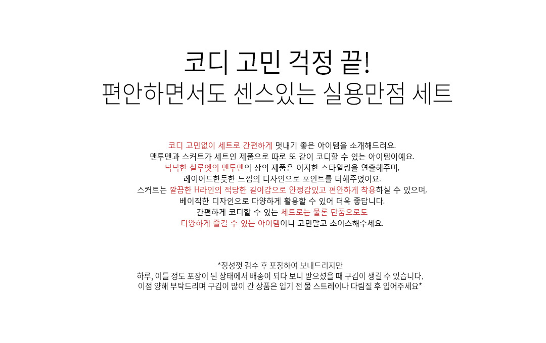 | 소재(Material) | 그레이(gray)폴리(polyester/)80%+레이온(rayon/)15%+스판(spandex/)5%/블랙(black)폴리(polyester/)95%+스판(spandex/)5% | |