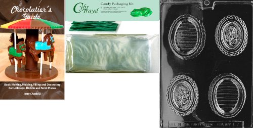 Cybrtrayd MdK50GRBk-F079 Oval Rose Pour Box Fruits and Vegetables Chocolate Candy Mold with Chocolatier's Bundle, Includes 50 Cello Bags, 50 Green Twist Ties and Chocolatier's Guide