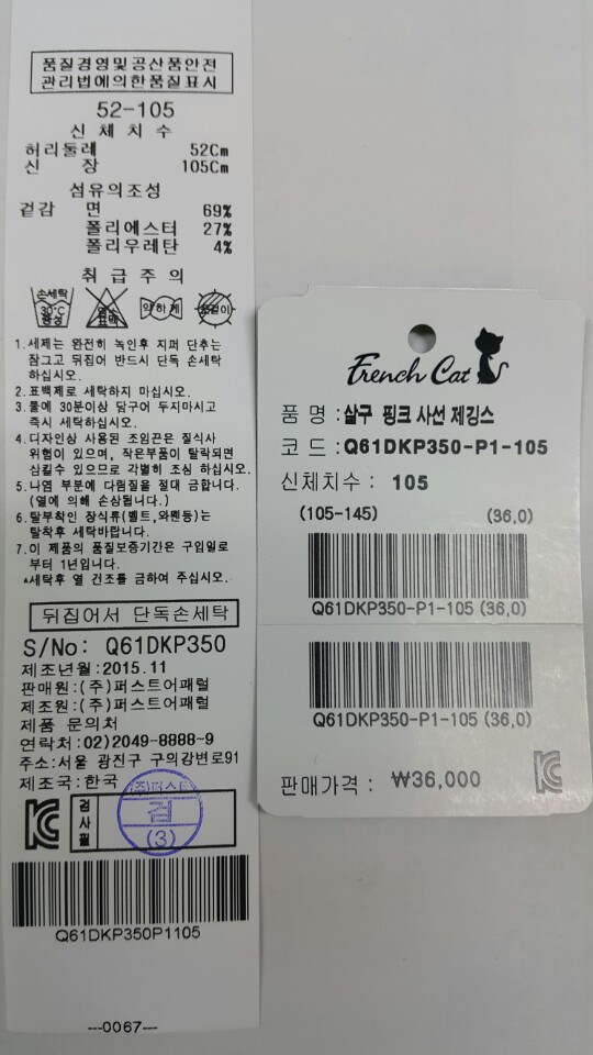 ■소 ; ; ; ; ; ; 재 : ;면 69% 폴리에스터 27% ;폴리우레탄 4%