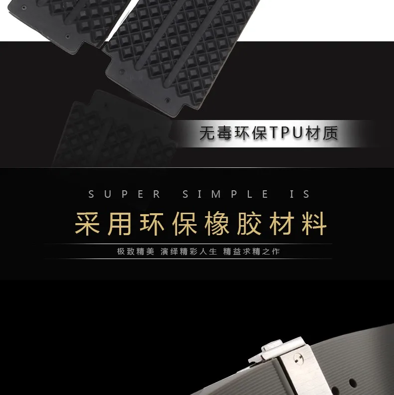 실리콘 고무 스트랩 손목 팔찌 팔찌 방수 손목 밴드 볼록 인터페이스 25 미리메터 21 미리메터 액세서리 벨트