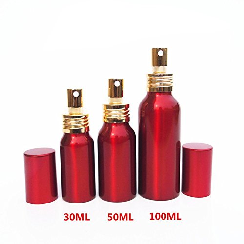 2 Pcs 30ML/50ML/100ML(1oz/1.67oz/3.33oz) Red Aluminum Empty Refillable Fine Mist Spray Sample Bottles Atomization Bottles Jar Pot Container for...