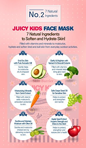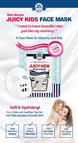 BIGGREEN Skin Barrier Juicy Kids Face Mask 5Sheets-Natural-Plant Based Ingredients -Non Toxic- Chemical...