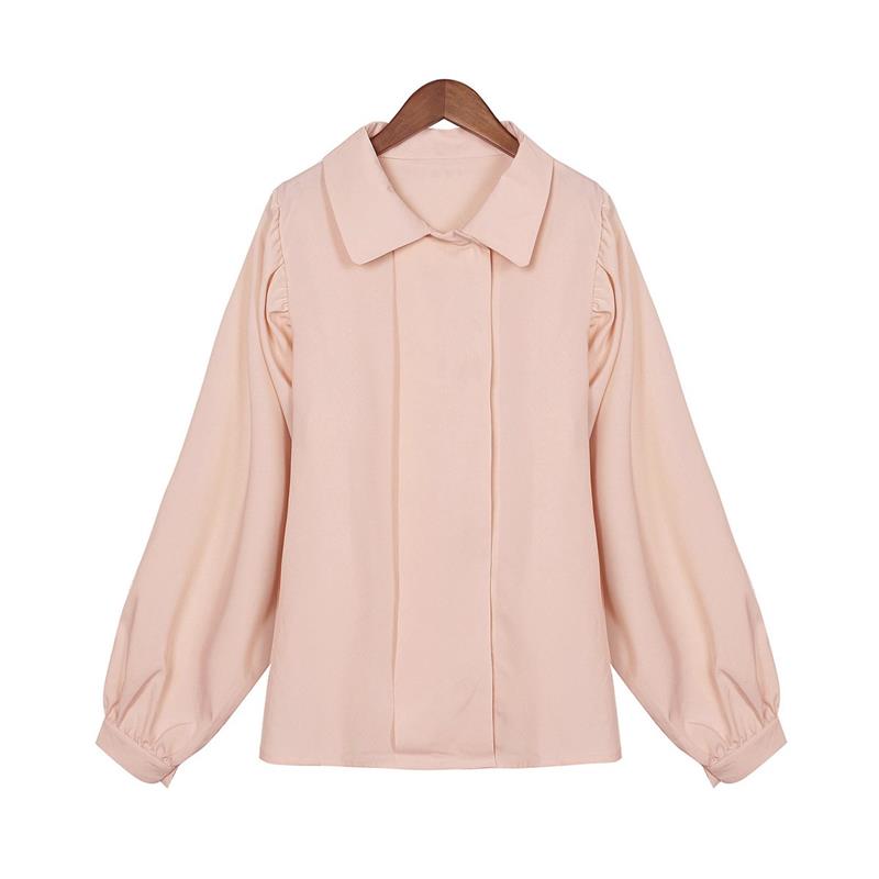 Doll Collar,Button,Long Sleeve,Pure Color