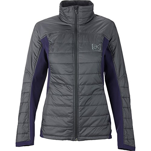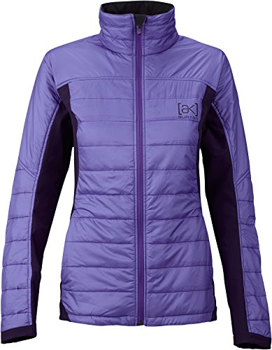 Tear up the pow in the Burton Women's AK Helium Insulator Jacket, and keep your core temperature nice and regulated. For optimum heat retention the front, back, and arms of the jacket feature low-bulk PrimaLoft insulation sandwiched between 20D ripstop nylon to provide focused warmth where you need it. The Helium's underarms and side panels use extra-breathable DryRide Softshell fabric that effectively evacuates excess body moisture. On long hikes or warmer days, use the Helium Jacket as an outer layer, and its DWR treatment will provide a first line of defense against moisture. Wear it under a technical shell for ultimate protection against frigid midwinter days. Zippered handwarmer pockets give you ample storage or a place to put your hands when they get cold, and a fleece-lined collar pampers your face when you're all-the-way zipped.Feature