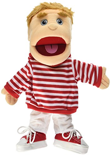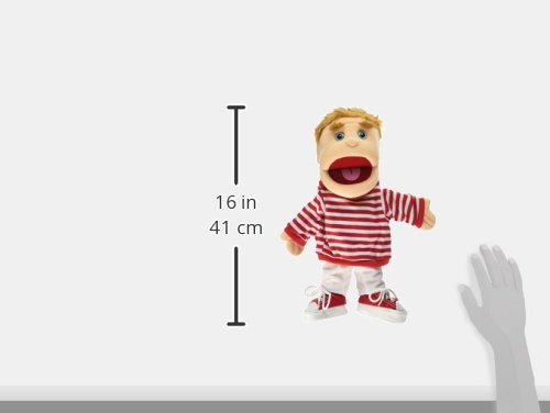 This 14 inch brunette haired glove puppet boy is ready to be someone's best friend. With his easy to access hand slit in his back, it is easy for the user to fit their entire hand in his head and have him talking in no time. This is the perfect size for younger children and he can be as loud or quiet as one can make him. This puppet is ideal for ages 3+.Feature