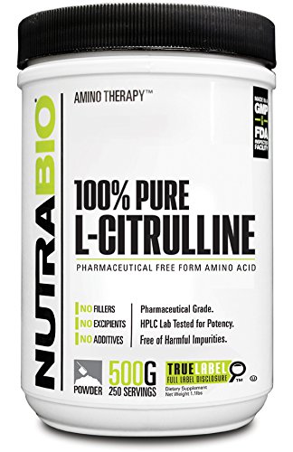 NutraBio 100% Pure L-Citrulline Powder - 500 Grams