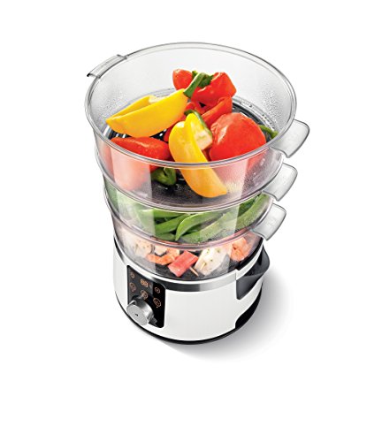 -. Feature : Dampfschale zur Zubereitung von Suppen, Stew, Reis und mehr / Aromaverstärker - verbessert den Geschmack durch das direkte Dämpfen von Kräutern & Gewürzen / Digitale Zeitschaltuhr zur individuellen Einstellung der Zubereitungszeit pro Dampfbehälter / Leistungsstarke 1.350 Watt und 9 Liter Fassungsvermögen / Leicht mit Wasser zu befüllen digitaler Wasserstands-Indikator mit Signal / Herausnehmbare Einlegeböden zum Dämpfen von z.B. einem ganzen Hähnchen / Lieferumfang: Dampfgarer mit 3 Dampfbehältern
