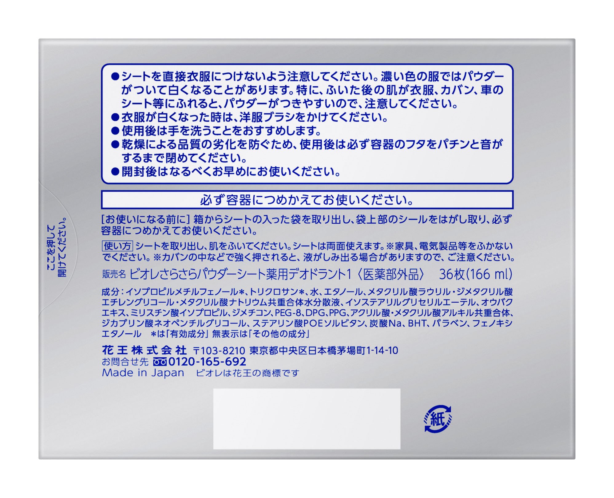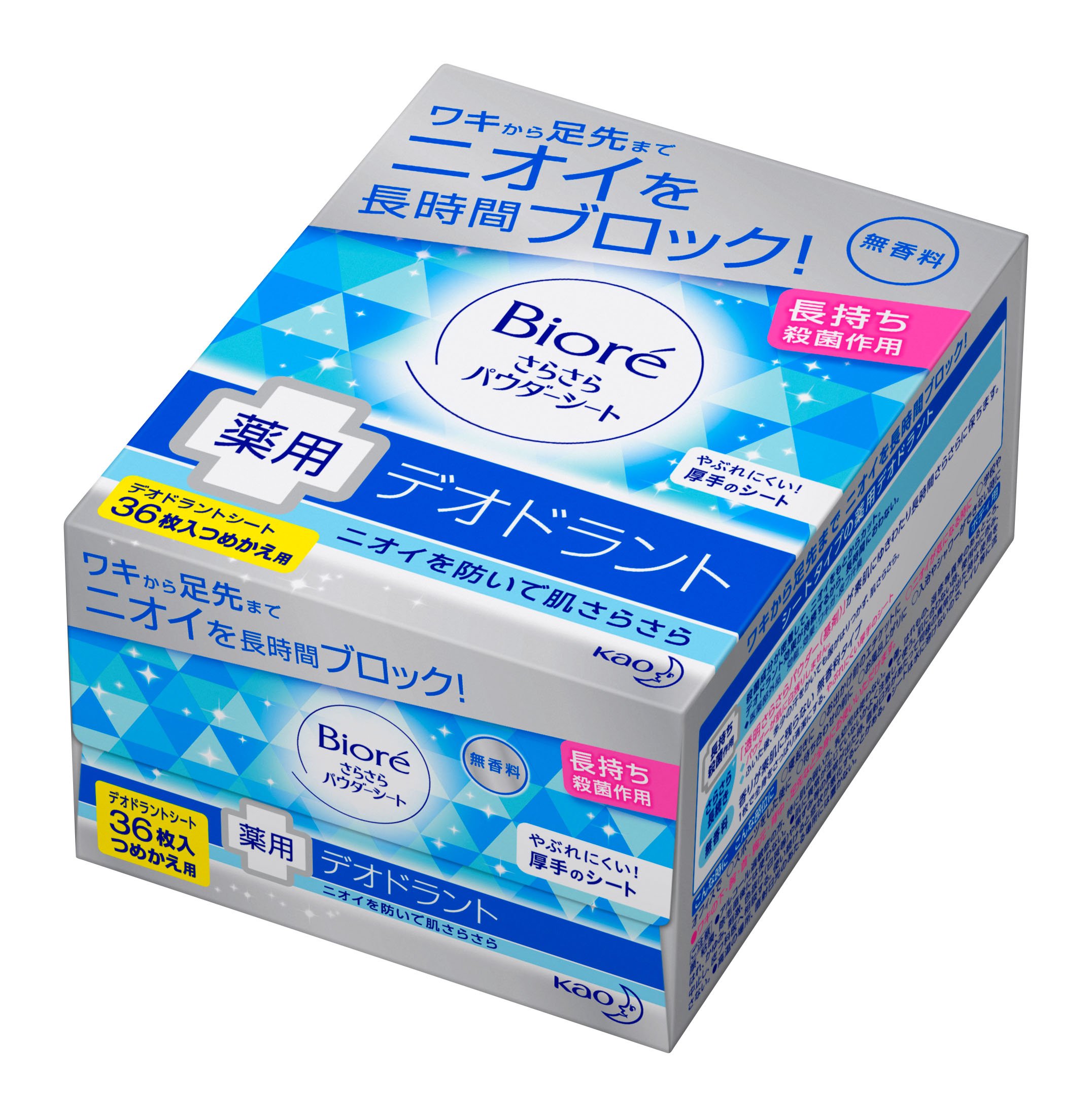 Biore 36 sheets for free-flowing powder refill sheet deodorant fragrance-free