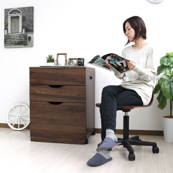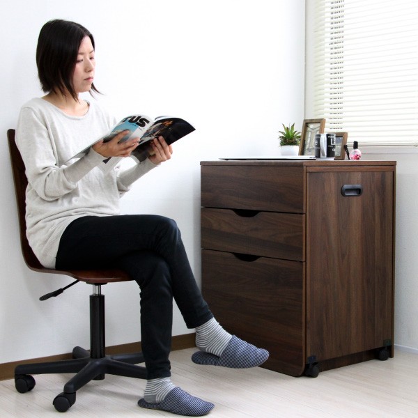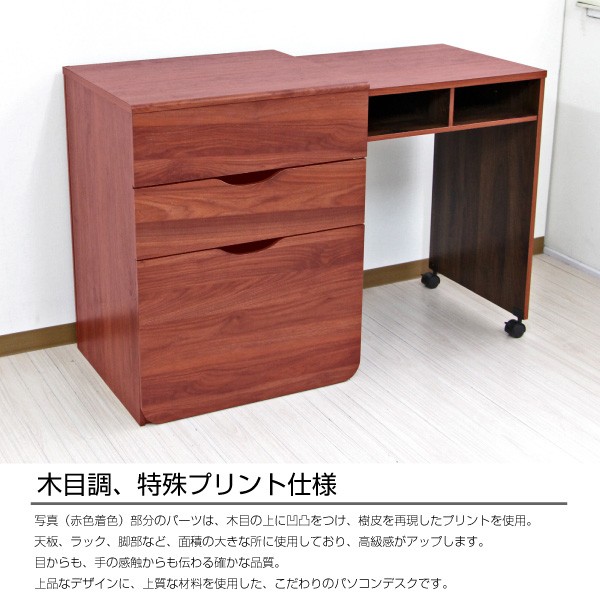 ■デスク側板にストッパー付きキャスターが付いているので楽に引出せます。