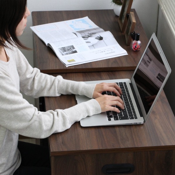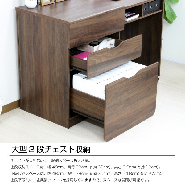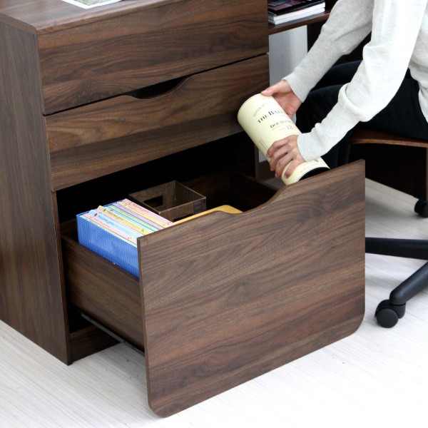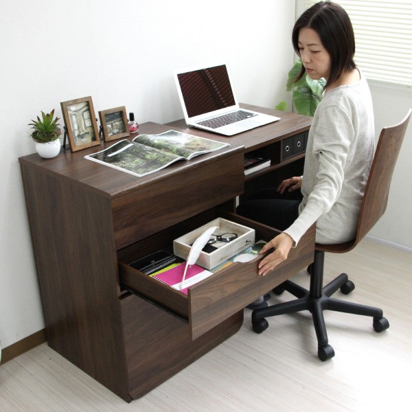 ■金属レール付き引出し大小2杯つき、大きい引出しにはA4ファイルが収納可能。