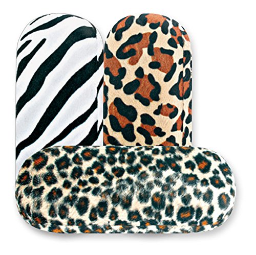 Binding : Eyewear Product Description Protect your eyewear in style with these fierce and super fun faux fur hard eyeglass cases. The exterior features a brushed faux fur that comes in three different wild animal prints: Jaguar, Leopard, and Zebra. Each exotic case is of quality construction and has a strong metal hinge to keep your frames safely inside. The inside is lined with plush styrene to help keep your glasses protected. Each case's exterior measures 6 inches long, 2.5 inches high, and 1.25 inches deep. Show off your wild side with these animal print cases, perfect for any pair of small to medium eyeglasses, reading glasses, or sunglasses. Hand packed with care in Dallas, Texas. 0