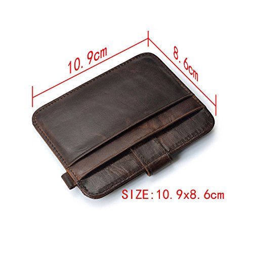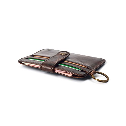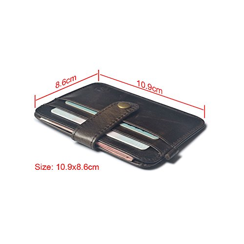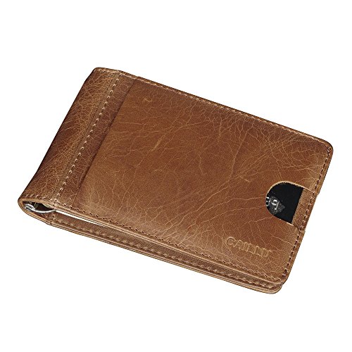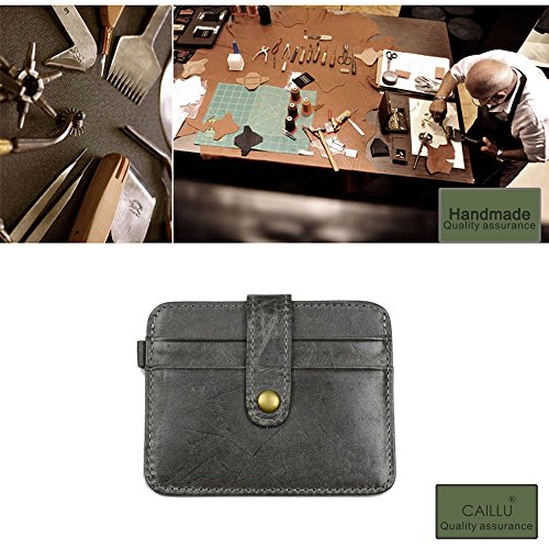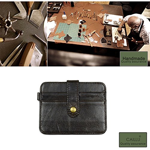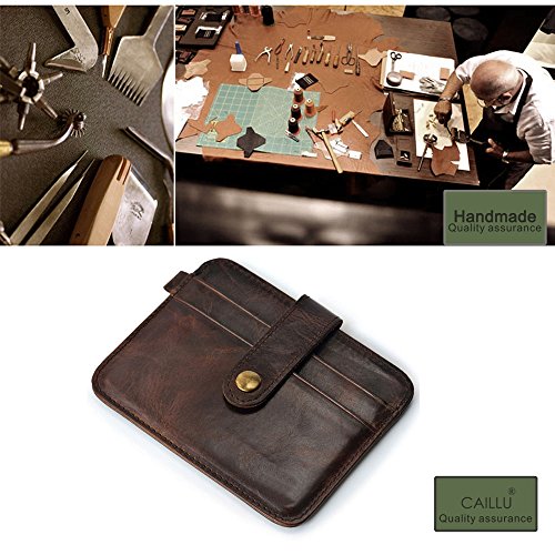 Product Description About CAILLU - CAILLU has been working in Leather craft for 20years, has many skillful artisans. TIP: - Due to the monitor and light difference, the color will be slightly different from the pictures. - Logo prints and package maybe a little different with pictures. Hate having a giant bulging wallet in your back pocket? This is the ONE you are looking for. Minimalist designed, slim and small, Bulk Storage, up to 6-7 cards and several cash notes, durable genuine leather, looks beautiful, feels great. It's a great front pocket wallet, a small compact card holder, enough for your daily use, walking around, light travel, nearby shopping. With RFID blocking layer, Keep your personal information safety; protect your credit/bank/ID card information from being remotely read by RFID scanners. Don't become a victim of the silent crime of electronic pick pocketing Features: 100%Genuine leather 6-7 cards 4.3 x 2.9 inch RFID signal blocking Covered by our 3 years warranty What is RFID? - RFID: Radio-frequency identification, uses electromagnetic fields to automatically identify and track tags attached to objects. The tags contain electronically stored information. Our Credit/Bank/ID card, passport have encoded chips tags, and stored our personal/private information. So, we should protect them from information hacker and data thieves. - Data thieves can read your private data of cards at a distance of 10ft(3m), using a RFID scanner. Now, this RFID signal blocking wallet can protect your personal/private information safety. - This item can block signal from 10MHz to 30GHz. Credit/Debit/ID card, driver license, passport use the frequency of 13.56MHz. It won't block signal from ID badge, some old hotel room cards or building access cards, which use a frequency of 125 kHz. 0