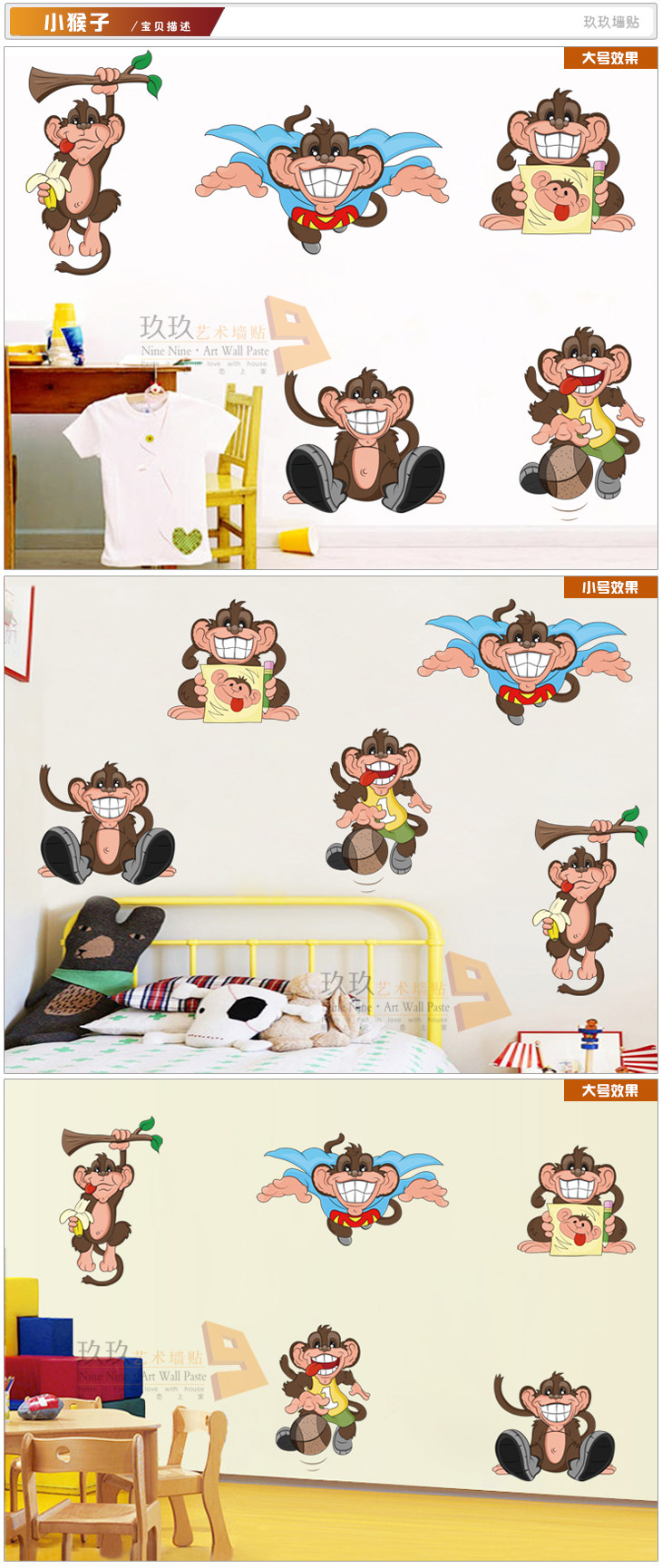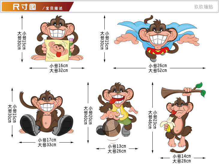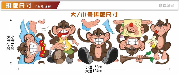 墙贴幼儿园儿童房男孩卧室学生宿舍卡通个性搞怪嘻哈小猴子贴纸