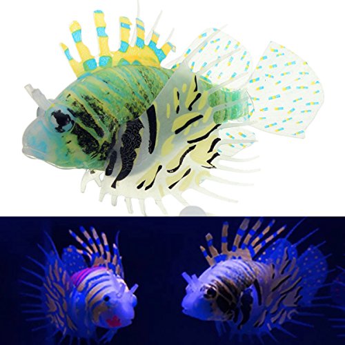 Feature : Creating a realistic and colorful underwater world for fish tank or aquarium. / change your aquarium into a beautiful scenery. / A powerful sucker in the bottom keeps the item firmly fixed in the fish tank or aquarium. / Size: 12 X 9 CM (width * hight), Package: 1 x Artificial Lionfish decoration / Made of eco-friendly materials, with no harm to fishes. Lights illuminate the item creating a wonderful glowing effect. Glowing effect under aquarium light.