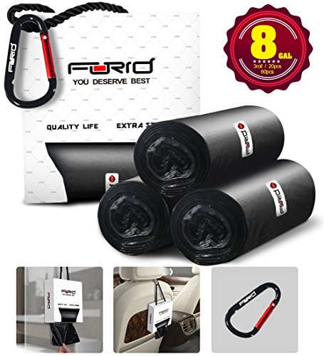 8 Gallon Trash Bags with Clasp Hook, FORID Durable Black Garbage Bags with gift box , Extra Strong Rubbish Bags For Home, Office, Car, Waste Bin, Wastebasket / 30 Liter/ 3 Rolls/ 60 Bags