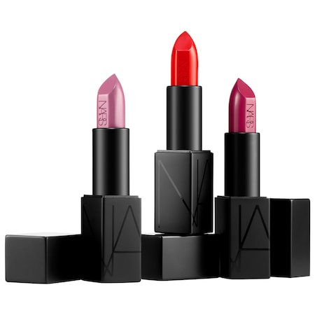 A trio of NARS’ cult classic Audacious Lipsticks in exclusive shades, all packed up and ready to gift in a chic, black, mirrored keepsake box.