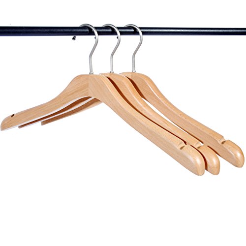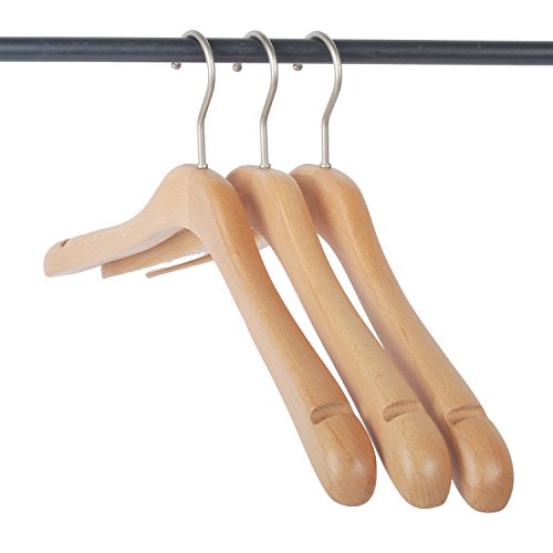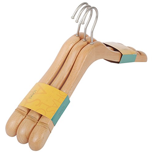 -. Title : LOHAS Wood Coat Hanger, Wide Rounded Shoulders Outerwear Wood Hanger with Natural Finish, 3-pack