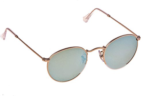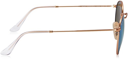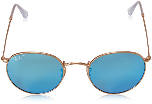 These foldable Ray-Ban sunglasses are finished with etched metal rims and bold, mirrored lenses. Hinged frames and arms. Small case and cleaning cloth included.