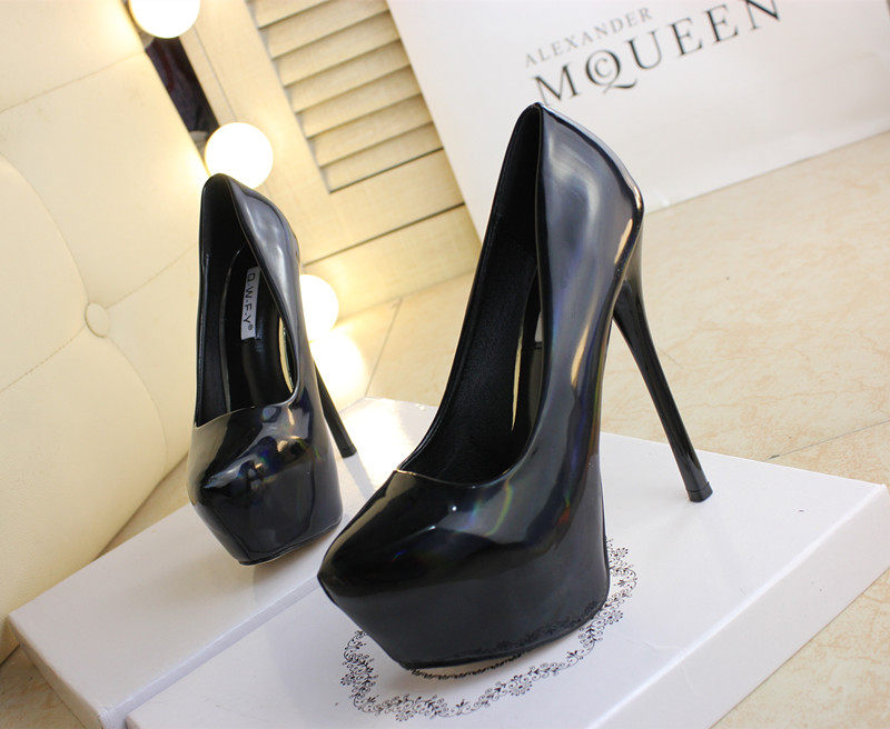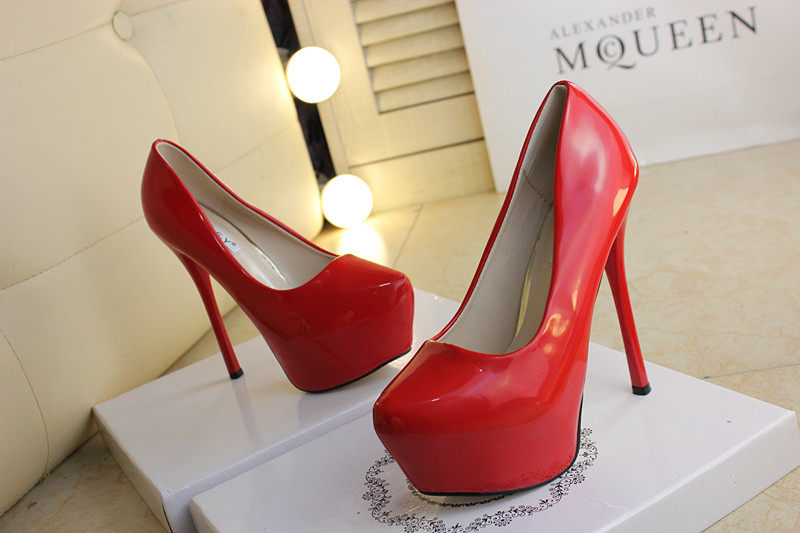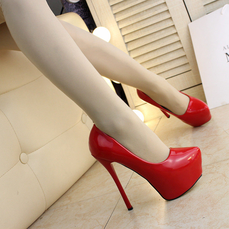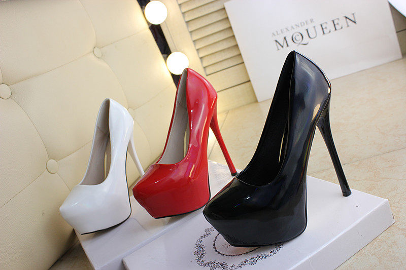 14cm细跟漆皮尖头超高跟单鞋红白色婚鞋黑夜店超高跟鞋女秋新款潮